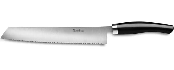 Das Nesmuk Brotmesser hat eine Klingenlänge von 27 cm. Für die Klingen mit dem neuentwickelten Wellenschliff, wird ein schwedischer Messerstahl verwendet. Mit diesem hochwertigen Brotmesser zerteilt man sowohl Brote mit harter Kruste, als auch weichere Sorten mühelos. Außerdem ist es auch für das Schneiden von harten und größeren Früchten, wie Ananas oder Kürbis sehr gut geeignet.