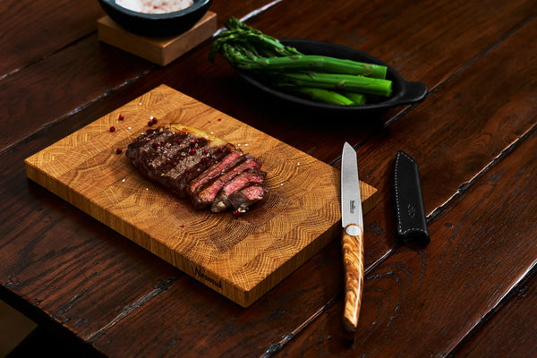 Beim Slicer wurde die charakteristische Nesmuk Form auf die schmale Klinge adaptiert. Die kürzere Version des Nesmuk Slicer ist mit 16 cm Klingenlänge ein ideales Messer zum Filetieren und eignet sich mit der flexiblen Klinge besonders für exakte Schnitte bei kleinen Fischen und Fleischstücken.